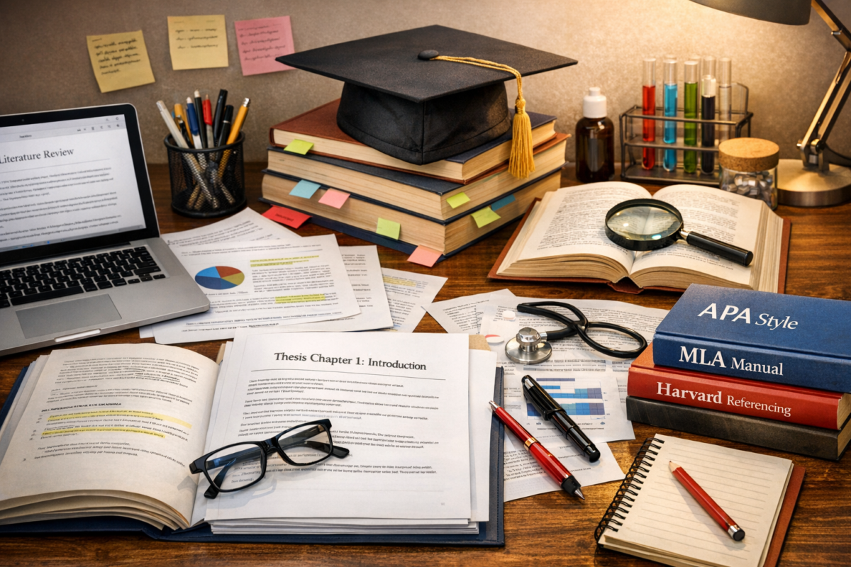 Professional support is available for university students working on thesis, dissertation, and research projects across different academic fields.